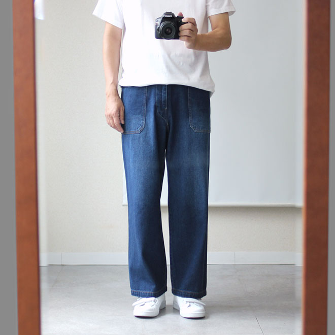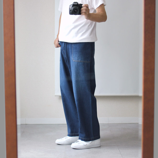 US40年代のワークパンツをモチーフにつくられたワイドストレート型デニムパンツ。