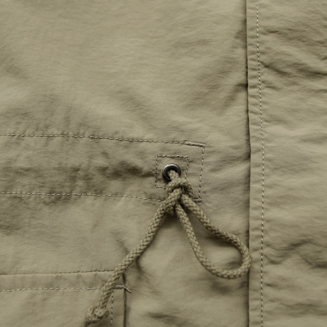 また、ウエスト、裾に絞りの利くコードが備わり、シルエットのアレンジが可能です。