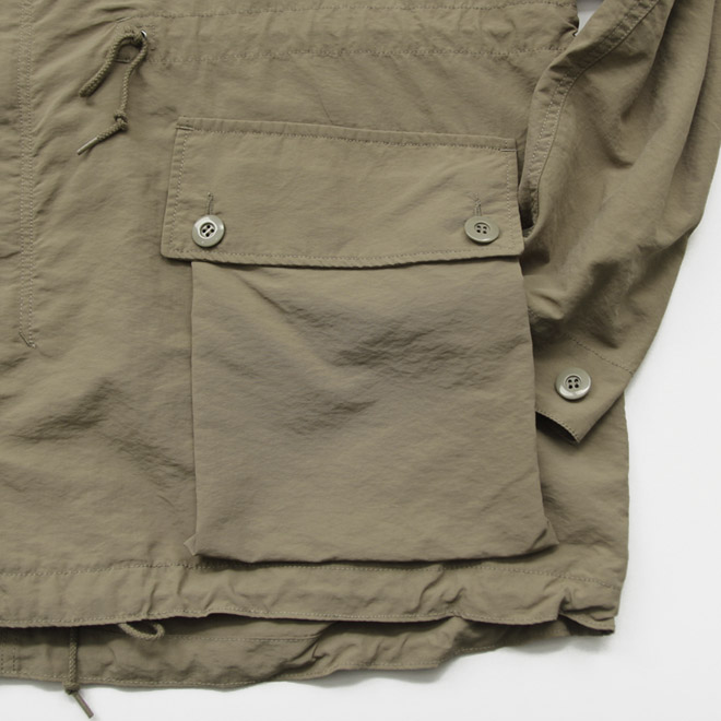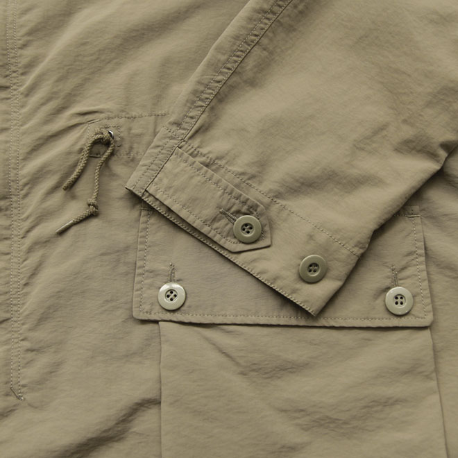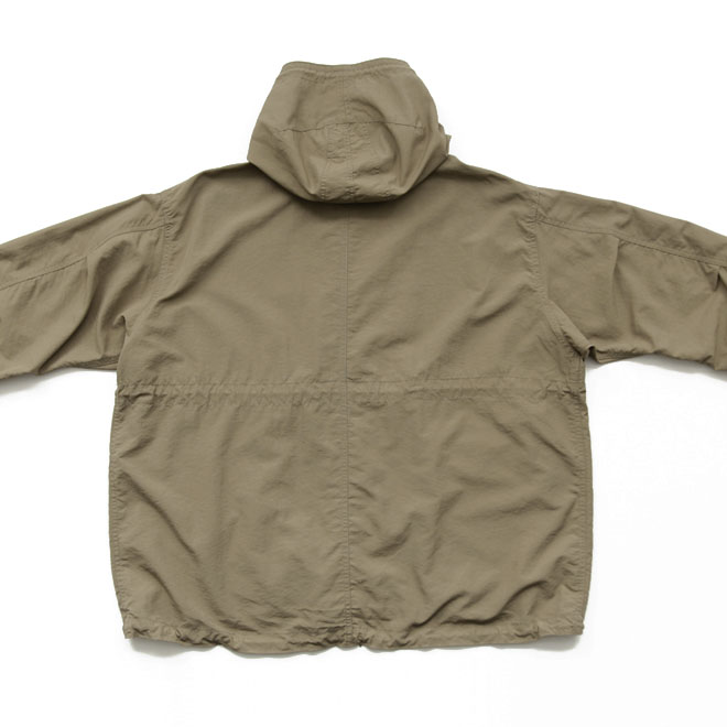 シルエットは肩を落としたルーズフィットのオーバーサイジング。薄手ナイロン生地の自然なドレープが魅力となります。