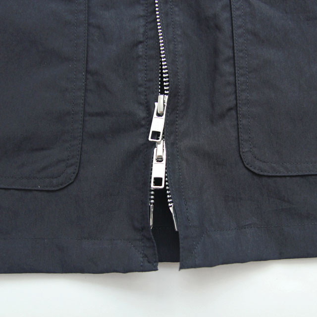 他にダブルジップ、チンストラップ、裾のアジャスターなど、細やかなディテールがさりげなく配され、さらにフロントポケットが2重構造、内ポケットが2つ備えられていたりと実用面がしっかり意識されたつくりとなっています。