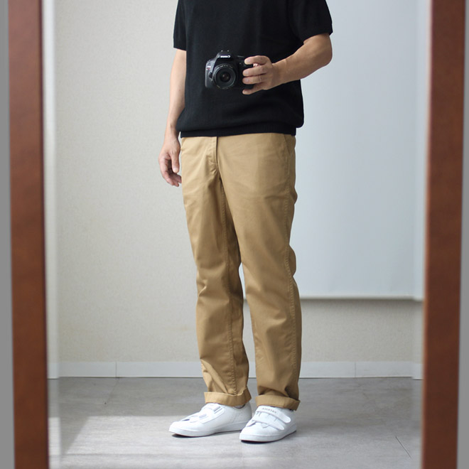 ブランド定番のベーシックなチノパンツ。