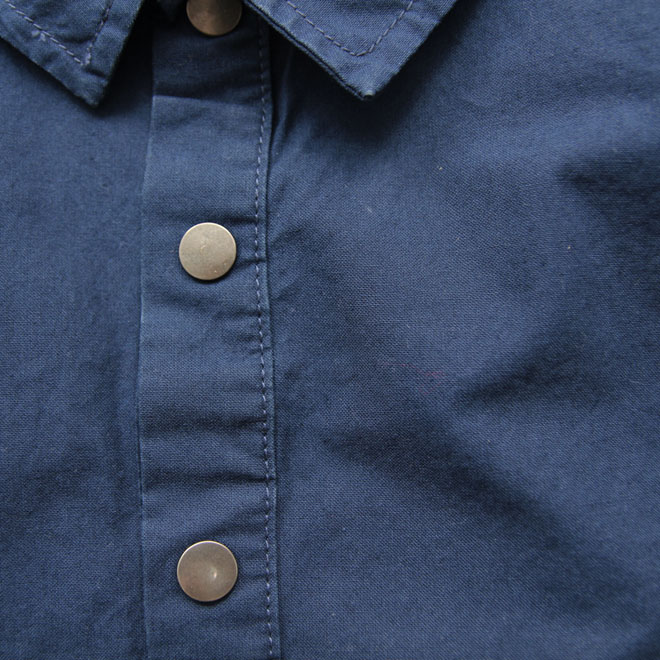 生地はブランドの春夏シーズンの定番素材となる平織りコットンです。シャツとしては厚地でしっかりしたウエイトのコットンキャンバス生地となります。
