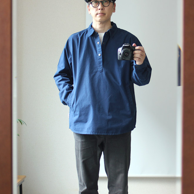 しっかりしたウエイト感とサイドポケットにより、スモックのような感覚に近いアイテムです。着こなしでニュアンスになる面白さを備えます。