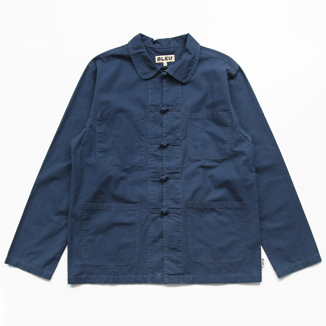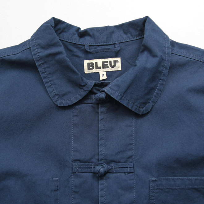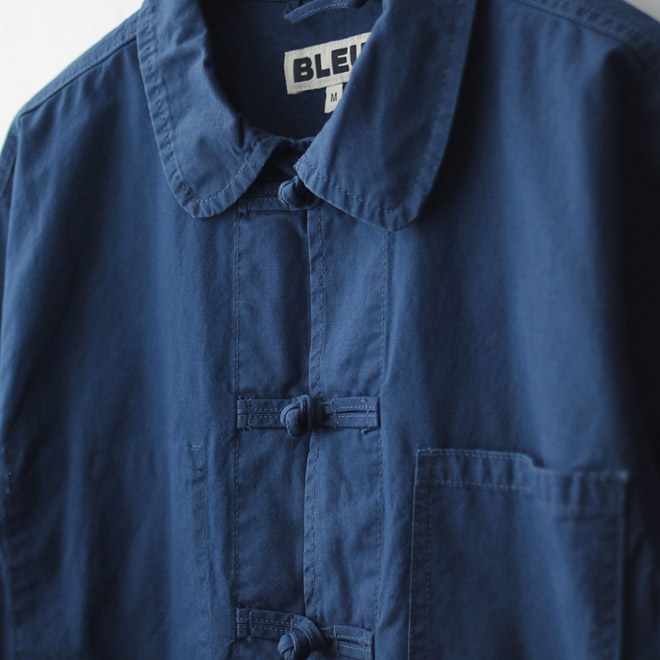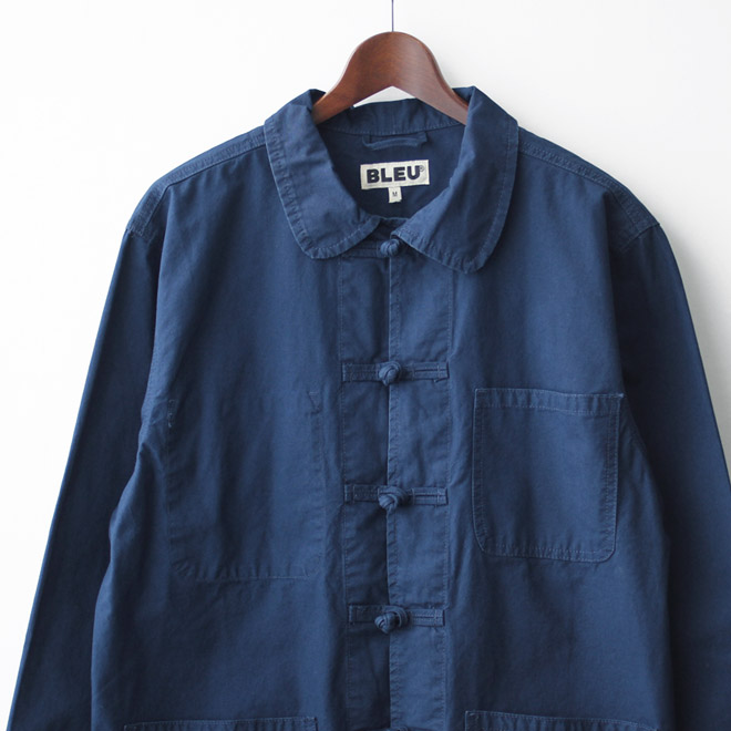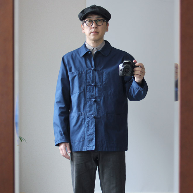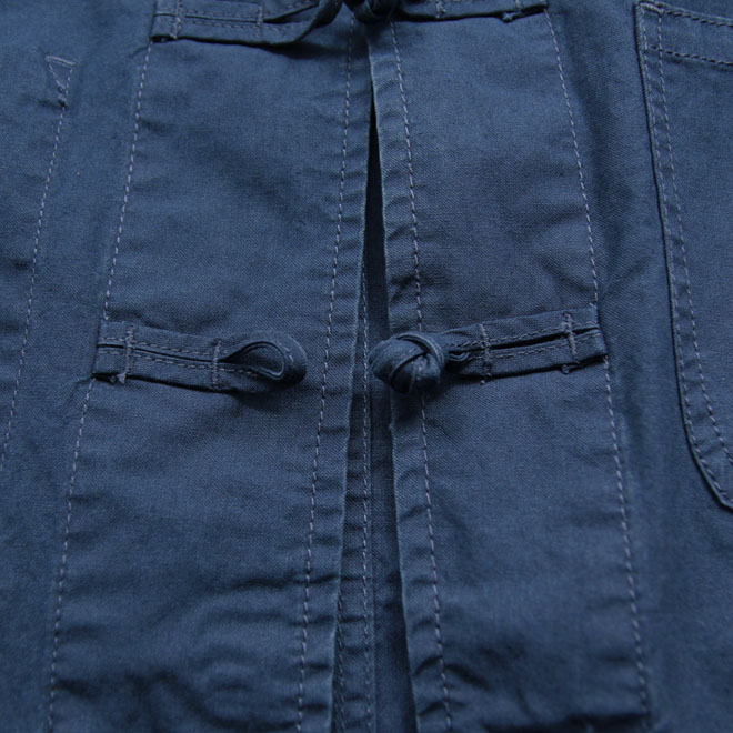 丸みのある襟、特徴的なチャイナボタン、ポケットは外側3つ、内側1つ。