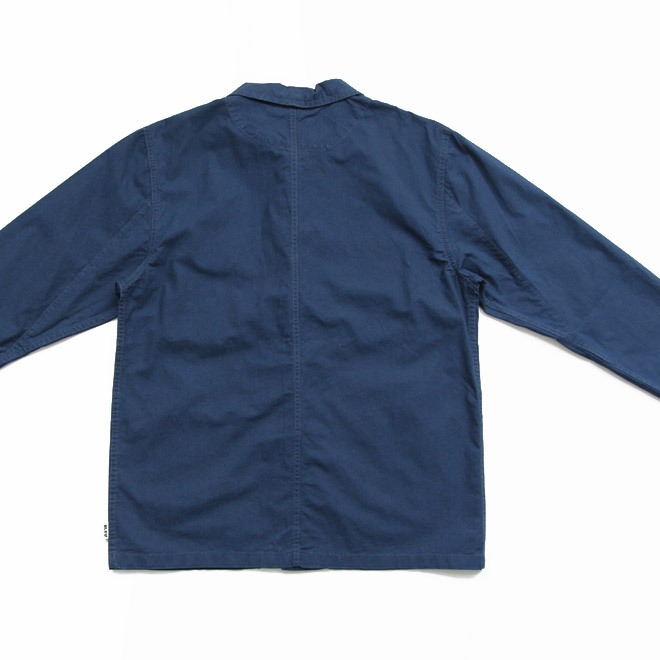 生地はブランドの春夏シーズンの定番素材となる平織りコットンです。シャツジャケットと呼ぶほど薄地軽量ではありませんが、ジャケットとしてはやや薄手の部類に入るコットンキャンバスです。
