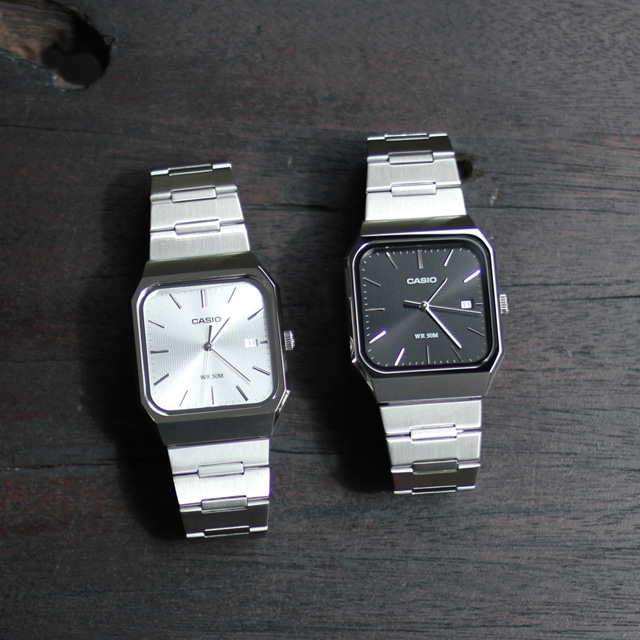 "テレビスクリーン" と呼ばれるスクエア型ケースが特徴のクォーツ腕時計。ヴィンテージデザイン系統の北米・ヨーロッパ流通のモデルです。