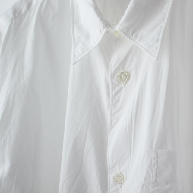 レギュラーカラーで、フレンチフロント(裏前立て)というさっぱりしたディテールに、思い切りのよいオーバーなサイズ感が特徴です。