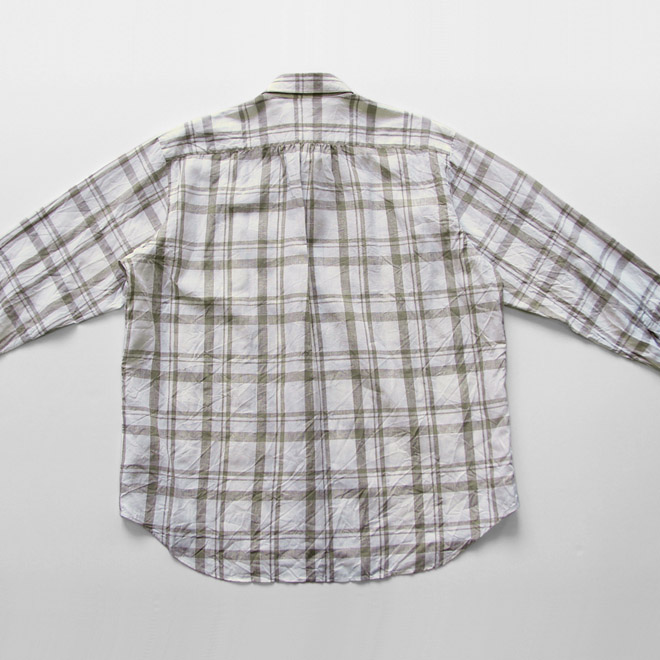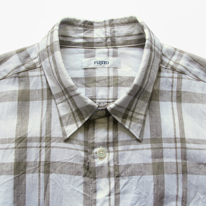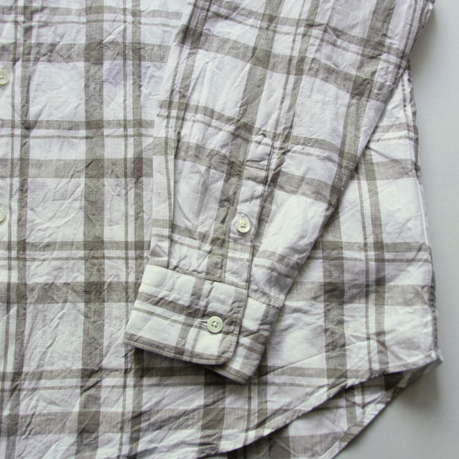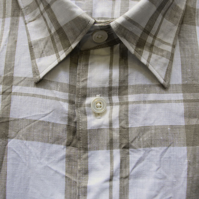 生地は薄地のリネン100、清涼感を感じさせる白地のオーセンティックなチェック柄です。