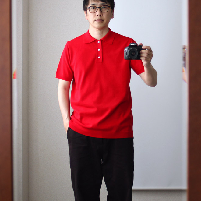 コットンニットポロシャツ。