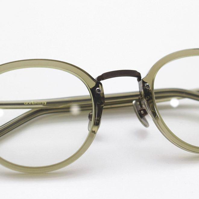 アセテート×チタンの素材コンビ、ボストン型モデルです。