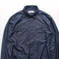 ワークシャツスタイルのデニムシャツ。