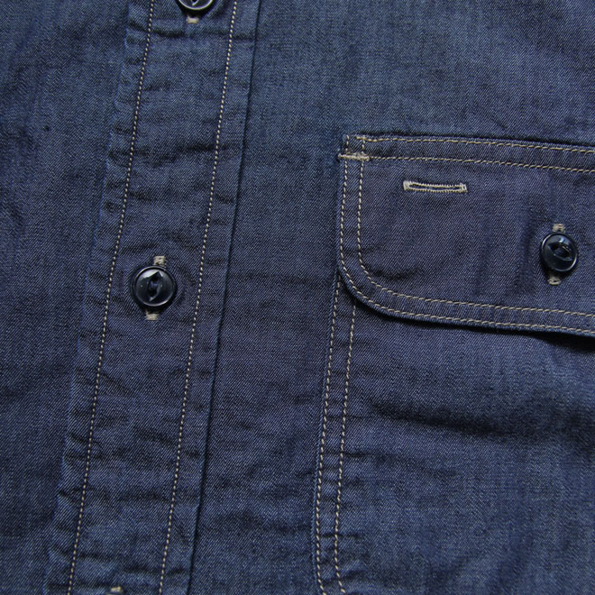 生地は4オンスのキメの細かいシャツ用のデニム。目の粗いワークテイストではなく、細番手糸によるドレステイストのデニム生地となります。