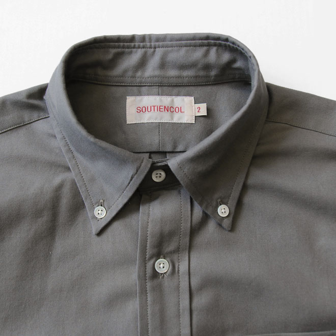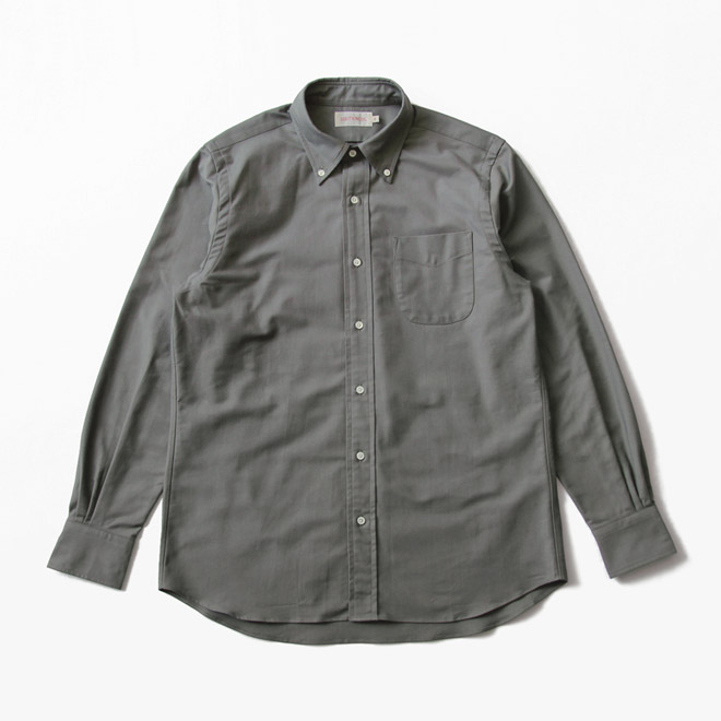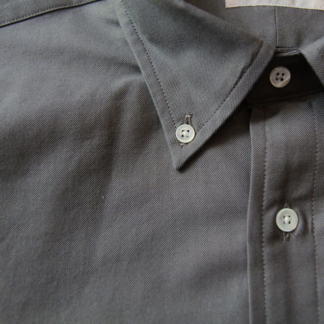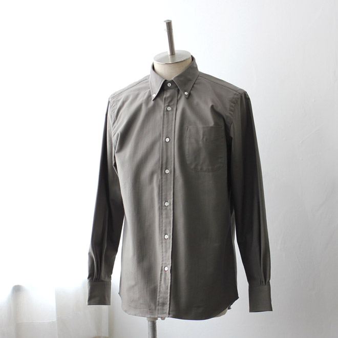 ファブリックはスーピマコットンによるオックスフォード生地です。毎シーズン定番展開されているホワイトと同品番生地の色違いとなります。