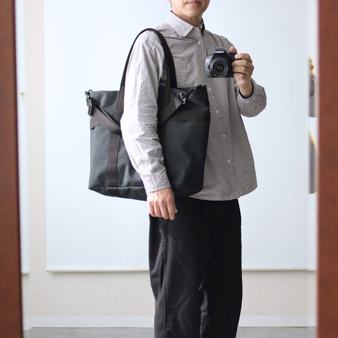 『トートバッグは潔くトートバッグで』という感覚の人は、この着脱式のベルトが付くことを好まないことが多く、たしかにそれも分かりますし、実際にデザイナーの山内さんもそっち側とのこと。ですが僕は自転車に乗るのでこれが本当に助かりますし、両手をすっかり明けると、できることはかなり増えます。