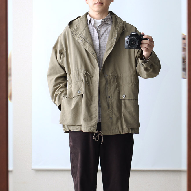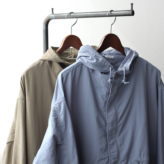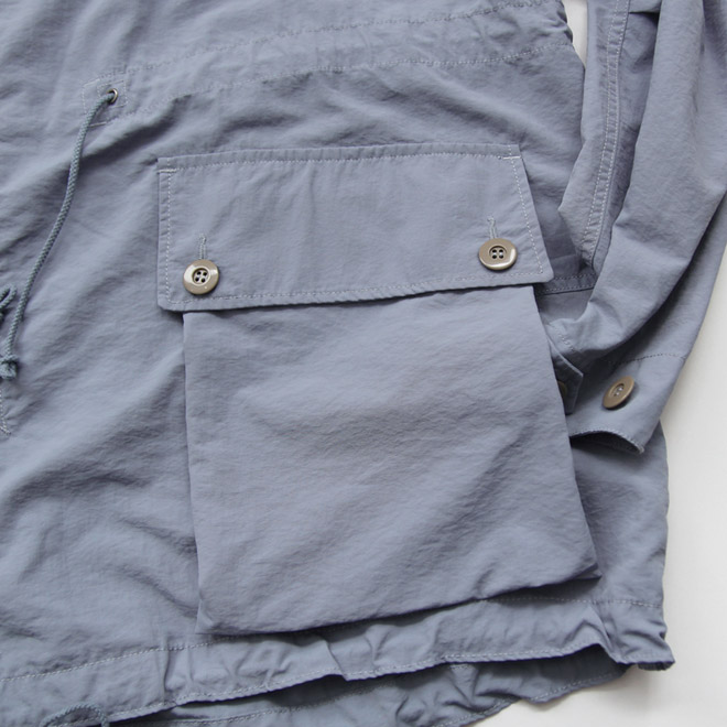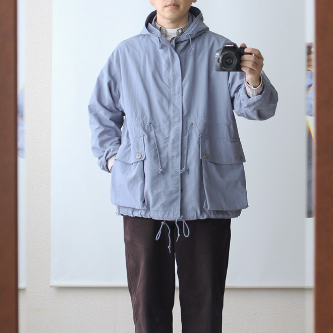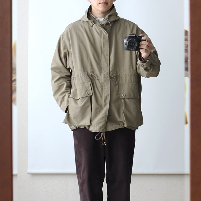 しっかりしたウエイト感とサイドポケットにより、スモックのような感覚に近いアイテムです。着こなしでニュアンスになる面白さを備えます。