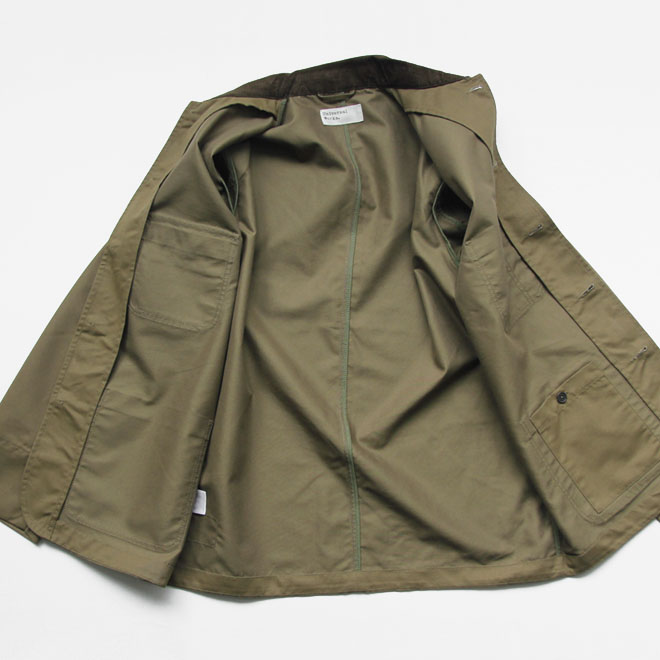 コーデュロイ襟によってハンティングジャケットのテイストもあるクラシックな雰囲気ですが、現代的な生地を用いた今の感覚のジャケットとなっています。