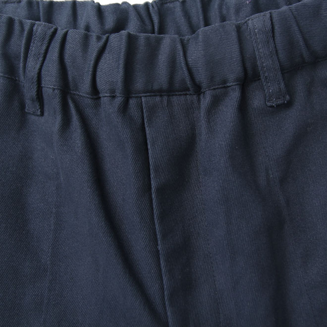 生地はストレッチコットンツイルを使用。しっかりした地厚がありますが、ウエイトはミディアム、ストレッチ素材が入り、伸縮性を備えています。