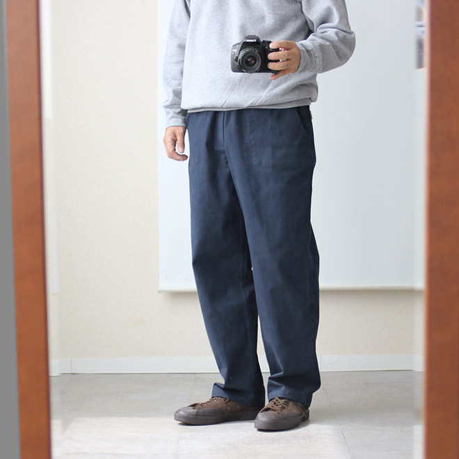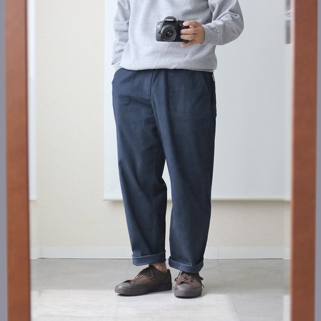 それなりにボリューム感のあるワイドテーパード型。クラシックというよりは “ファッション” で、ルーズシルエット派にはスタンダードな使いやすさを感じるバランスかと思います。