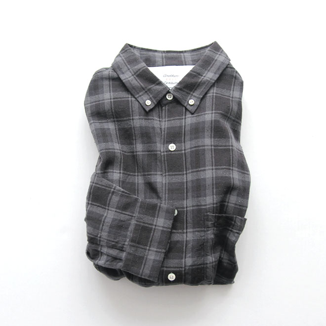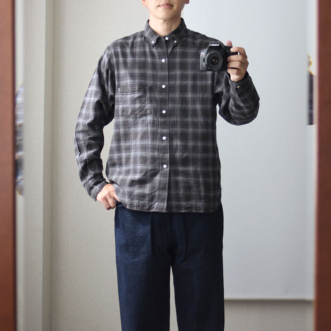 コンパクトな襟に対して、緩いシルエットというバランスがグレイト、上品なボタンダウンカラーにラフなテクスチャーのファブリックというバランスがエキサイティング、というシャツです。