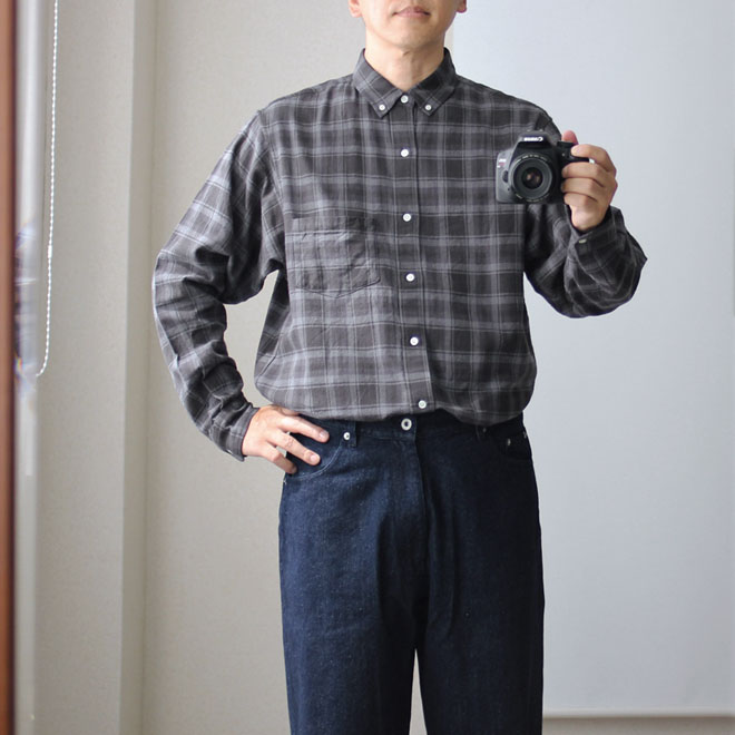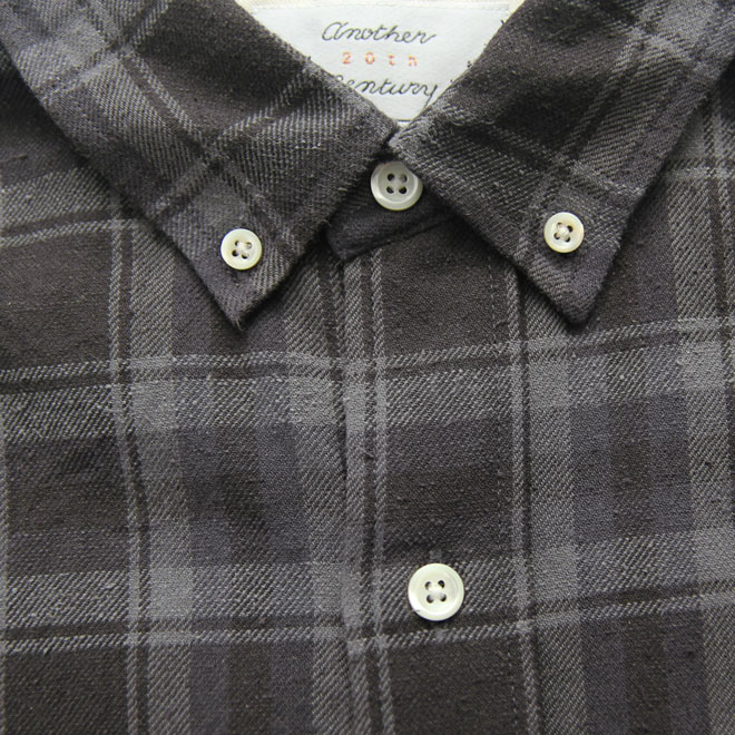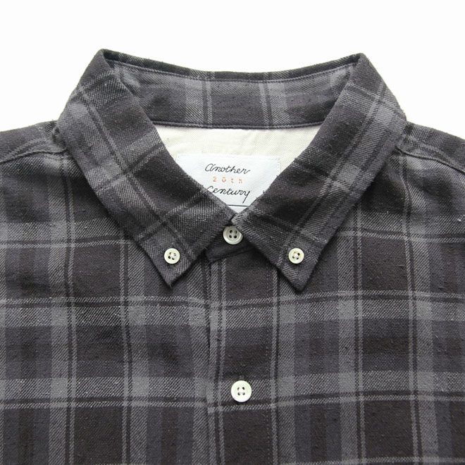 チビ襟のボタンダウンカラー、フロント6ボタン、ボックスシルエット気味のゆったり型、Another 20th Century らしいオリジナルなテイストでデザインされたカジュアルシャツです。