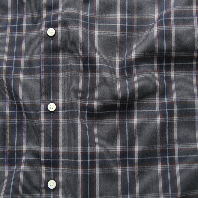 生地は微起毛のドビー織りチェック。ドビーならではの凹凸感がありつつ、微かな表面起毛でネルのようなやさしいタッチが特徴です。
