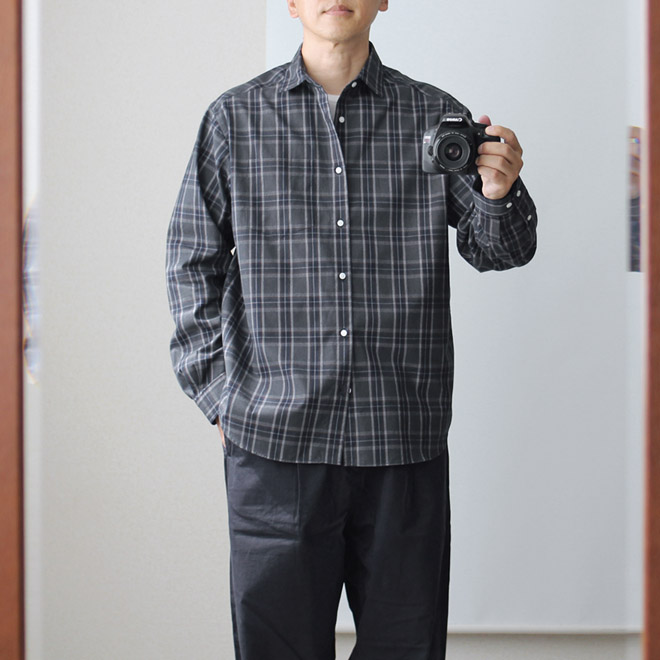 『しっかりゆるい』リラックスシャツ。ただ、オーバーサイズ具合はやり過ぎず、ほどほどに、というイメージです。