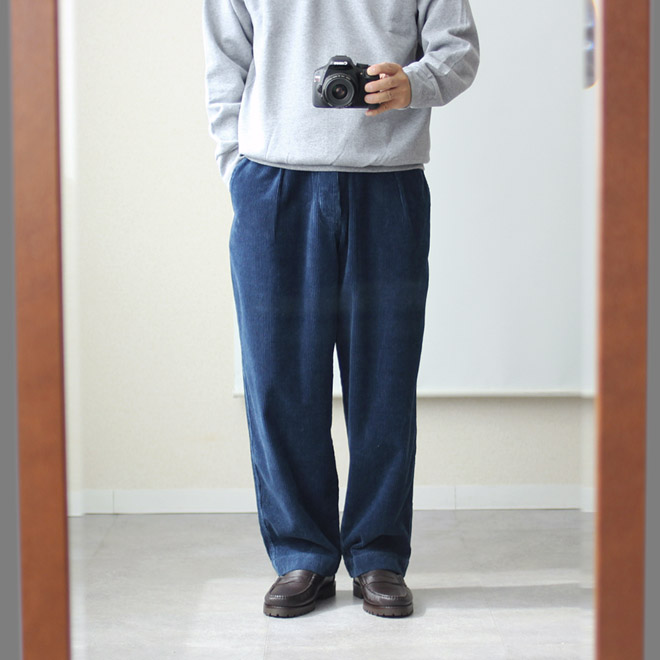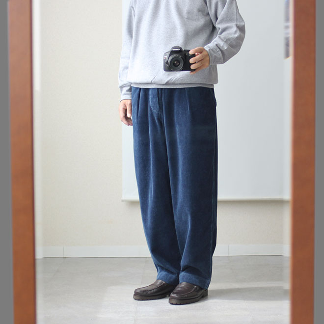 インディゴ染めコーデュロイでワイド型。渋い雰囲気です。