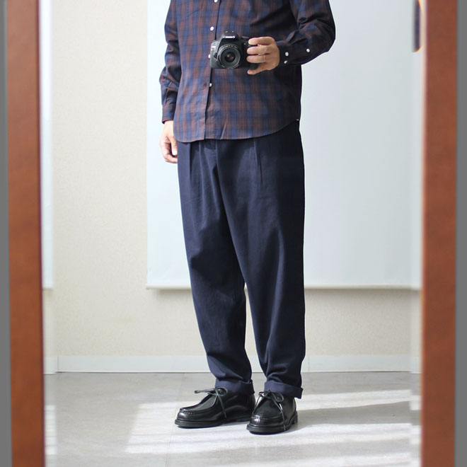 ですが、Universal Works. のルックなどでは、案外とこのフォルムのパンツにトップスはジャストサイジングで、ということが多く、そのバランスこそが Univesal Works.的だったりもします。