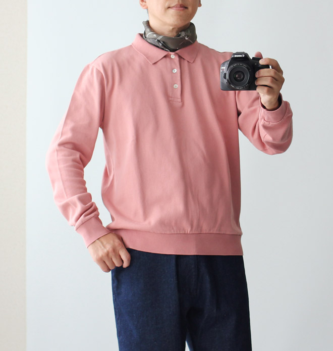 unfeigned の長袖ポロシャツをユーロスタイルのイメージで。本当はフェルトのベレーをかぶりたかったのですが、まだ店頭に出ていなかったので、今回は我慢です。
