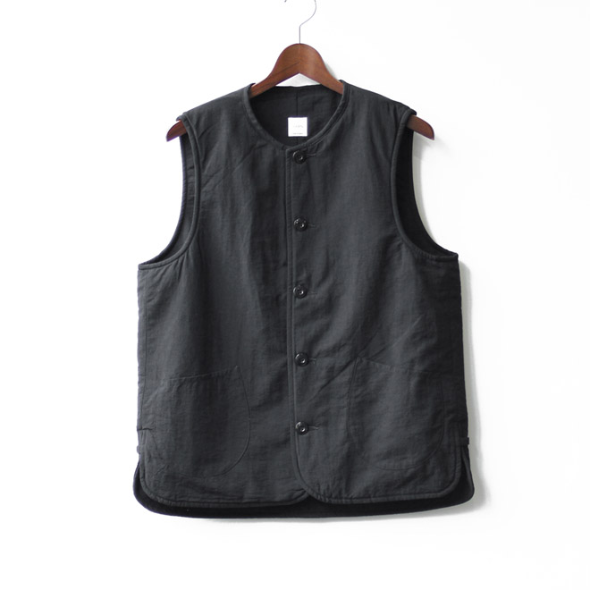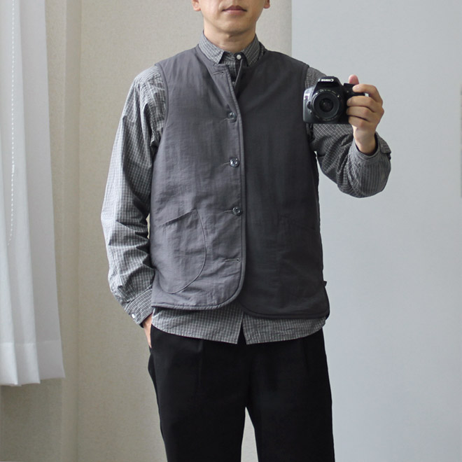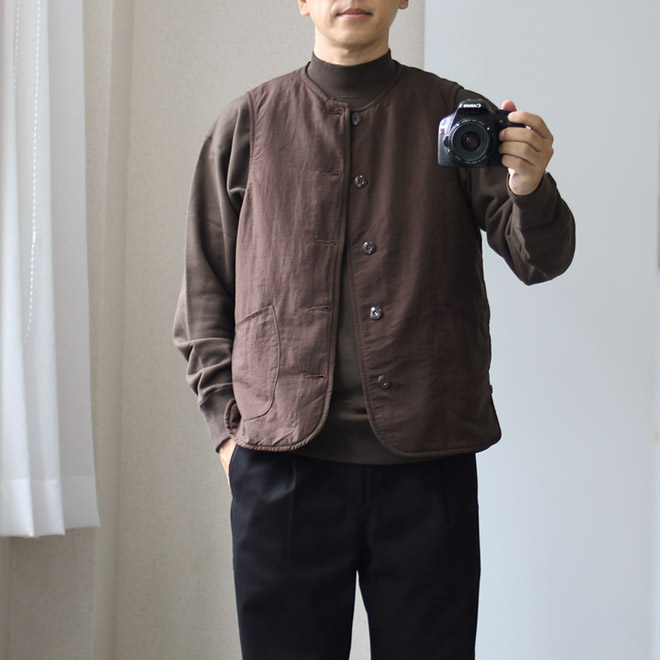 ベストはトラッドなドレスルーツ、アウトドアルーツ、ワークルーツ、スポーツテイスト、など色々ありますが、こちらはミリタリーのライニングのディテールを駆使していますが、アイテムそのものがミリタリーテイストという雰囲気でもなく、ファッション的にはニュートラルなポジションと言えそうです。
