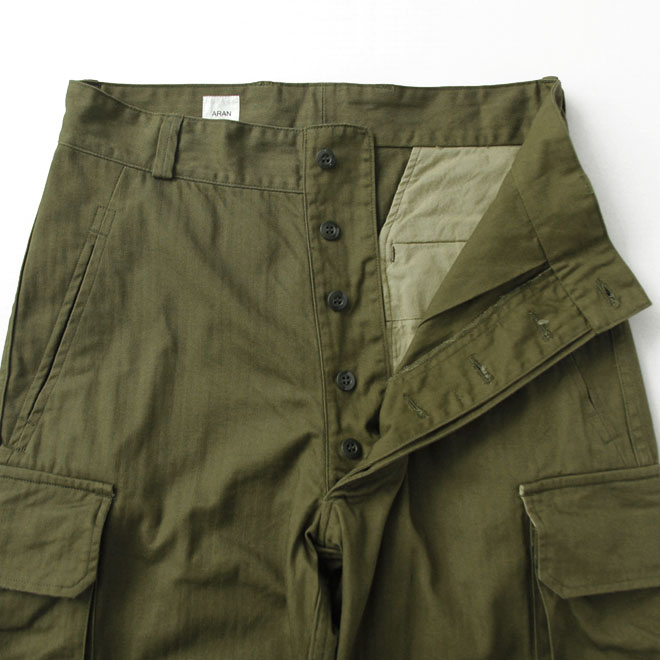 フロントのパッチポケット、ウエストのアジャスタータブ、バックのフラップポケットと、象徴的なディテールをしっかり再現しているのは ARAN ならではのアプローチです。