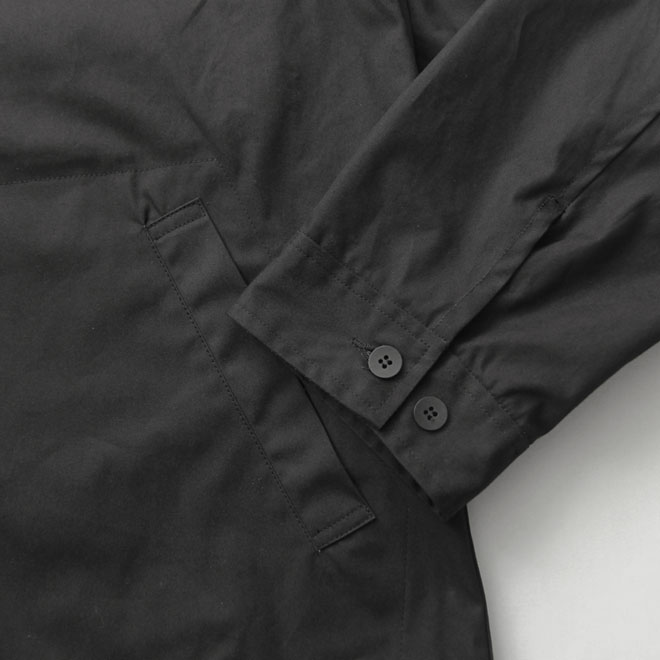 シルエットはボックス型で、ジャケットとしてはやや着丈が短めに設定され、胴まわりには余裕を持たせています。