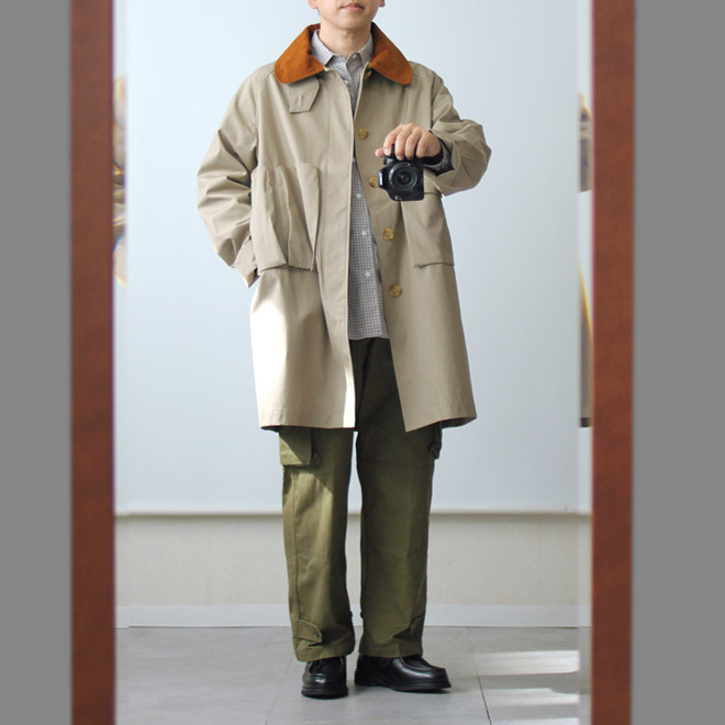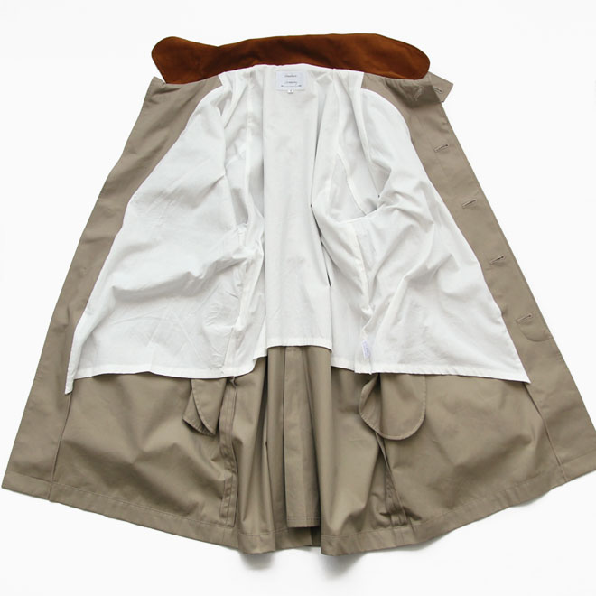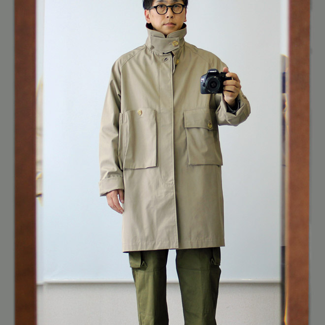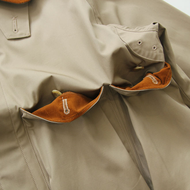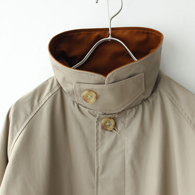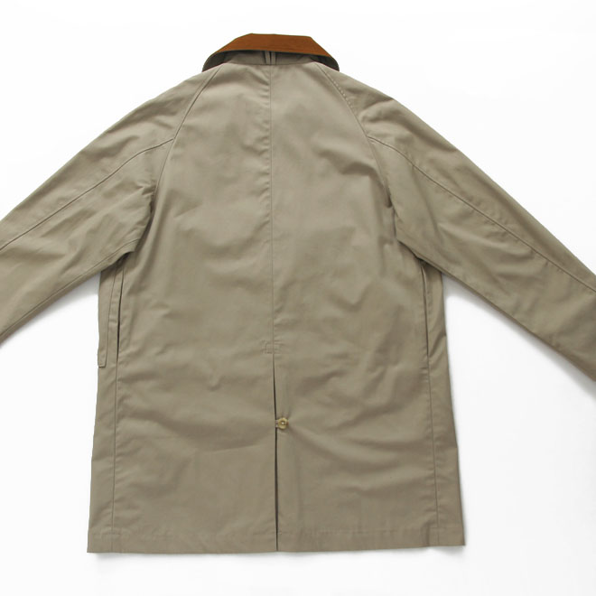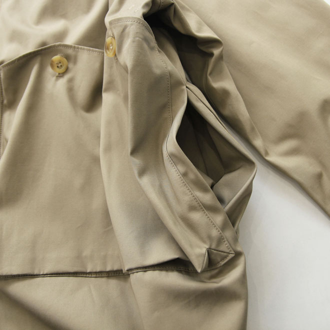 ファブリックは、撥水加工を施したクラシックなコットンギャバジン。 コットン100素材ですが、やや軽めのしなやかな質感の生地となりますますので、このコートの軽やかさは失われません。