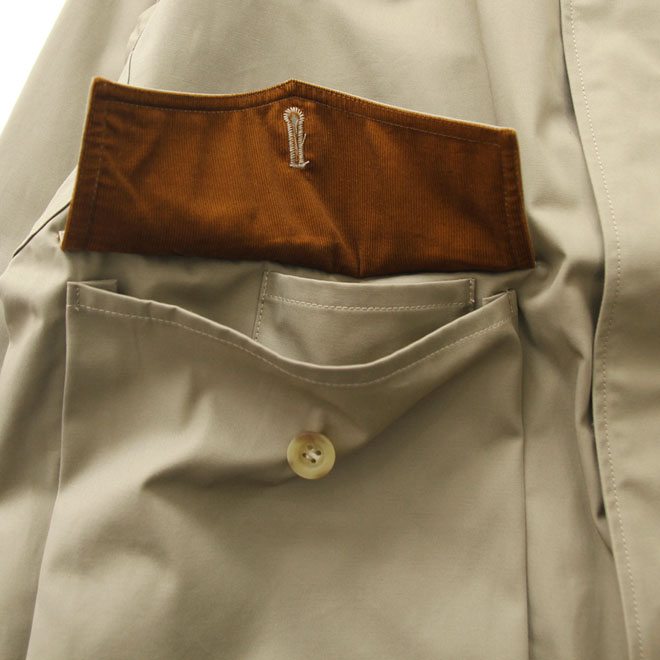 目を惹く大ぶりなポケットもフラップの裏にコーデュロイが貼られていたり、ポケットの中にポケットがあったり、大ざっぱではなく、各所で細やかさが光っています。