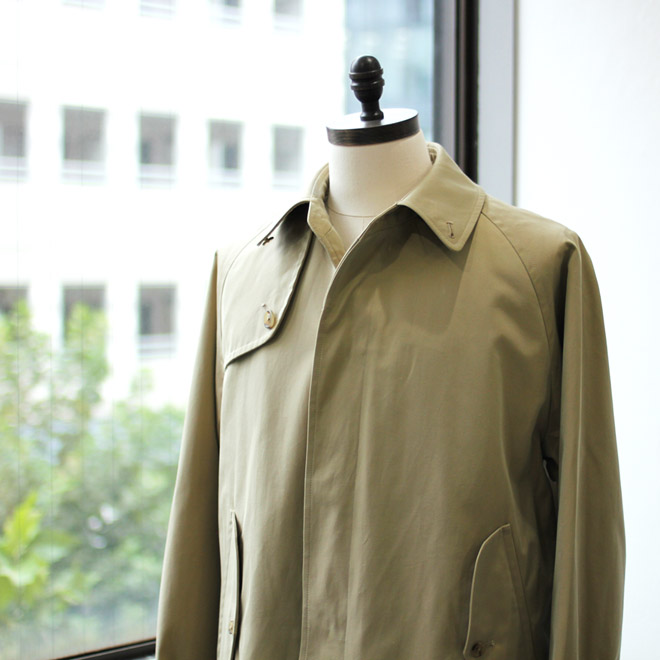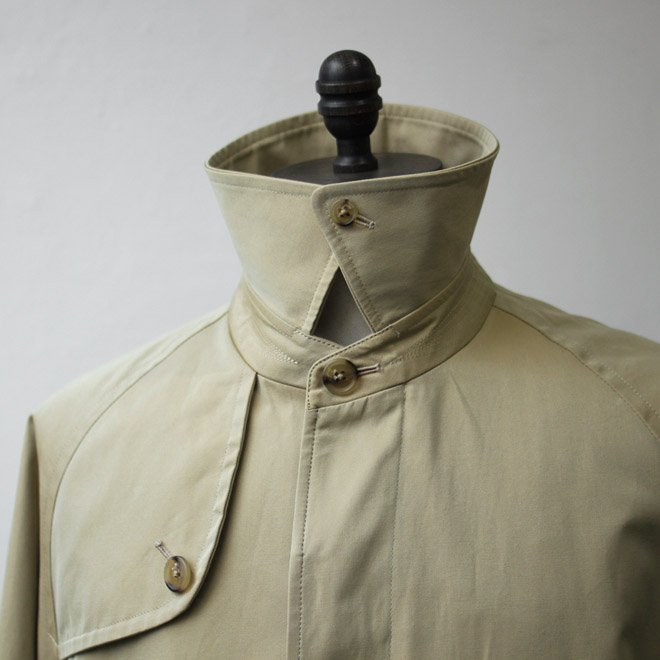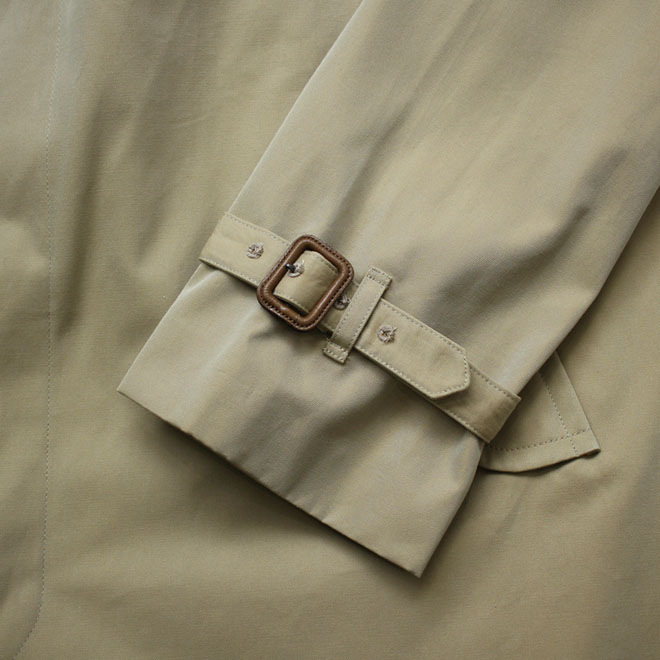 昨年まで使われていたベージュと同じ品番の生地ではあるらしいのですが、表面感、発色の感じはけっこう違っています。こちらの方がよりマットな光沢がありつつも生地感はラフで表情が豊か、つまりはヴィンテージのバーバリーのような雰囲気となっております。