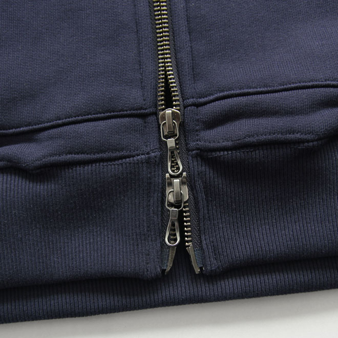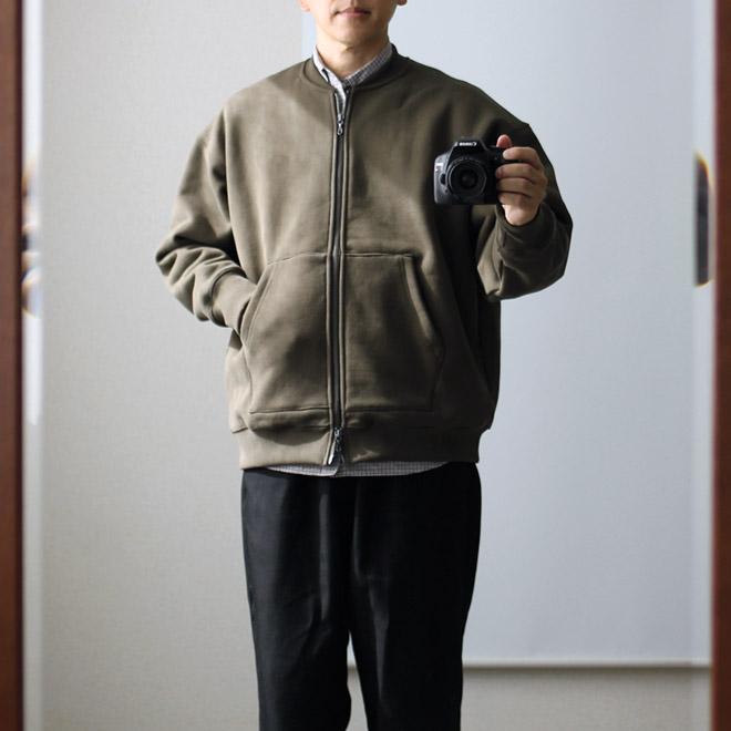 こちらもシャツ襟やタートル襟と相性が好く、バランス好く着こなすことできて、かつスウェット地ならではの動きやすさや扱いやすさがあり、そしてフルジップゆえに着脱がしやすい、という優れものです。