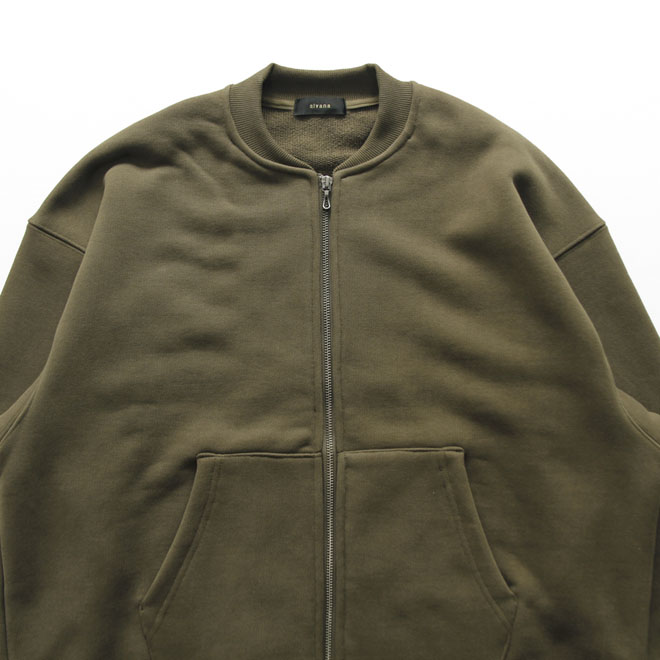 ヘビーウエイトのスウェット地によるジップアップカーディガン。