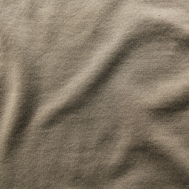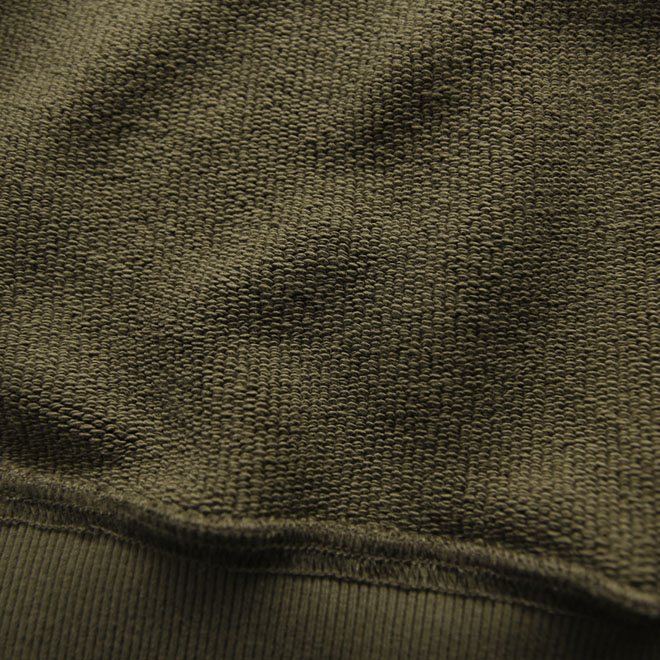 生地は和歌山の吊り編み職人の手によるブランドオリジナルの吊り編み生地を使用。しっかりした肉厚感とヘビーなウエイトでありながら、着用感は重たさを感じず、ふんわりとやさしく包まれる感触です。
