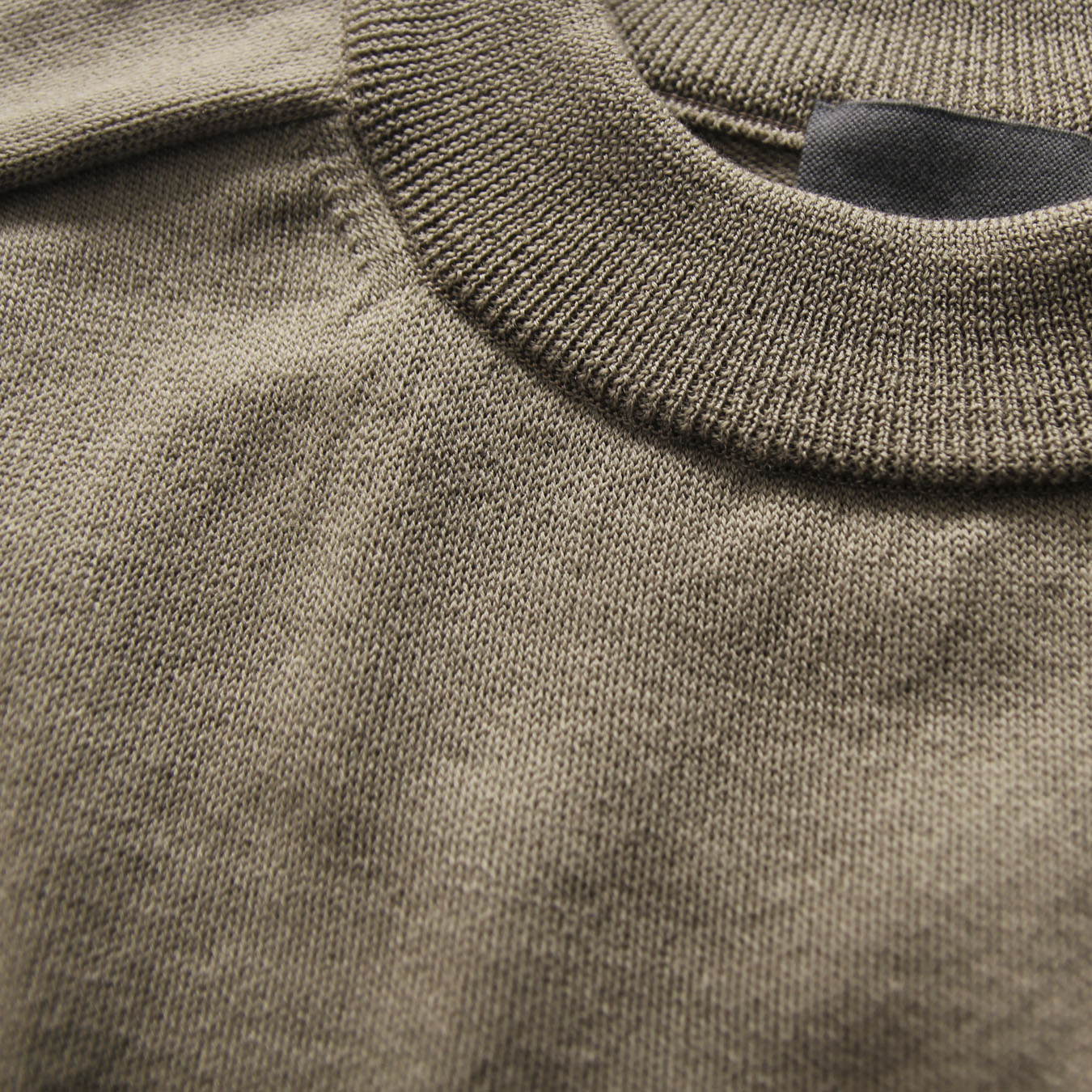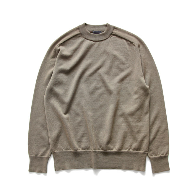 キメ細かな品の好さをベースにしながら、嫌味のない光沢感や、薄地になりすぎない編み立て、肩まわりの柔らかさなど、細部にこだわりが詰め込まれています。