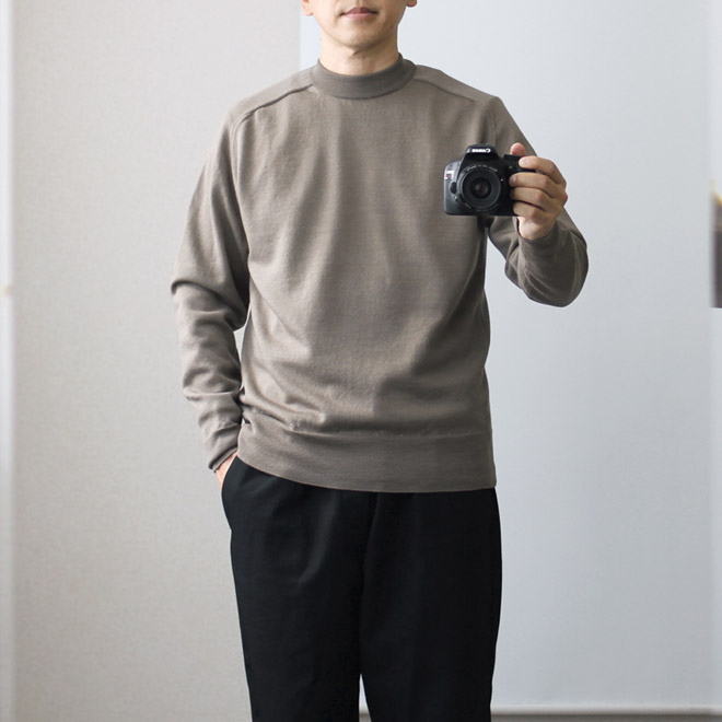シンプルに、スマートに、でもほどよくカジュアルに着られる大人のハイゲージニットです。