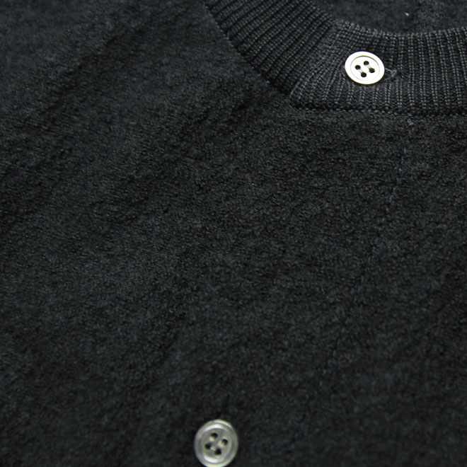 そこへもってきて、メンズでは少数派のクルーネック型のカーディガン。
