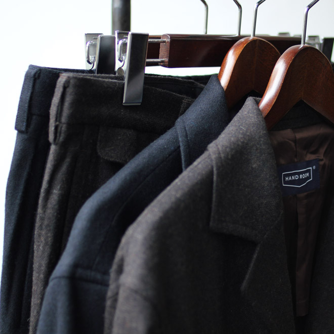 HAND ROOM より、新作のジャケット、トラウザーズが入荷しました。