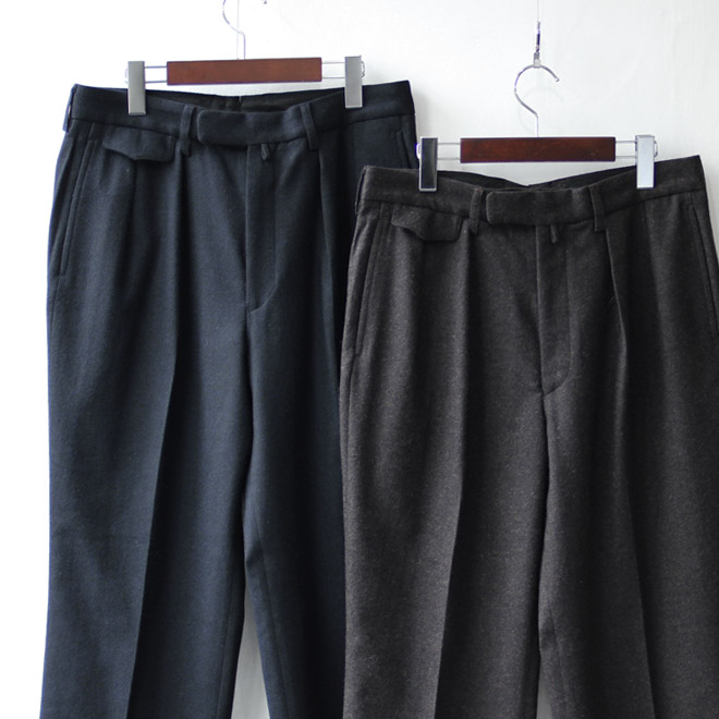 ウールファブリックによるクラシックテイストのトラウザーズです。