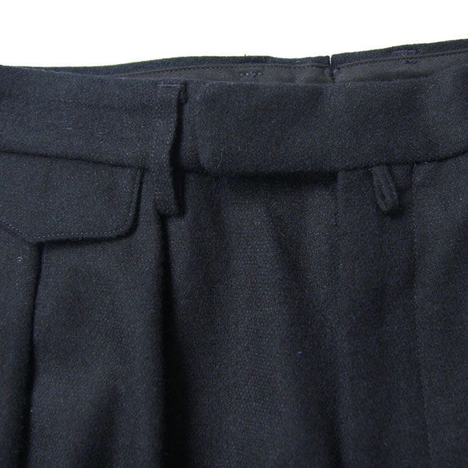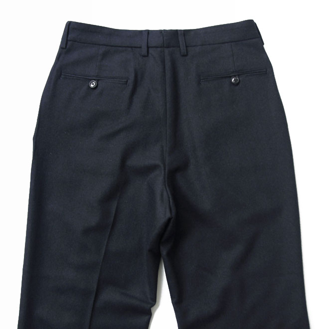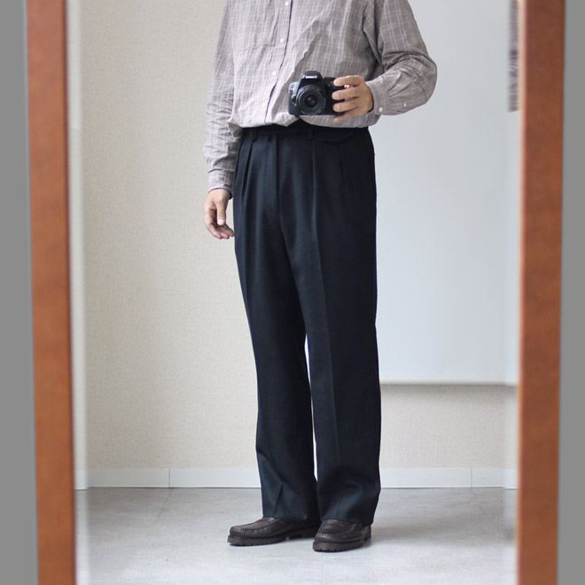 本格仕様と言いますか、かなり丁寧なつくりこみのトラウザーズで、上品なファブリックと相まって、たいへん品の好い雰囲気をまといます。