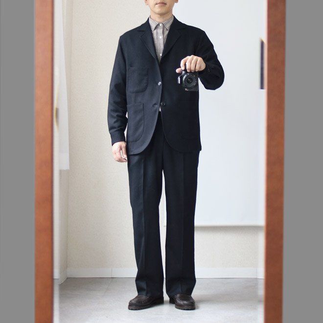 時間が無くてネイビーだけですが、これだけ見るとけっこうスーツ感がしっかりです。
