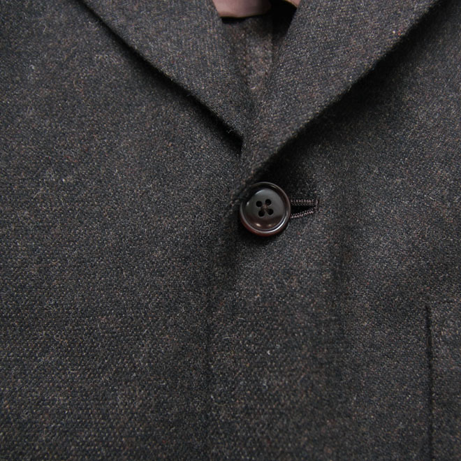 ウール、カシミヤに化繊をブレンドしたクラシックな見映えのフランネルのような生地を使用しています。