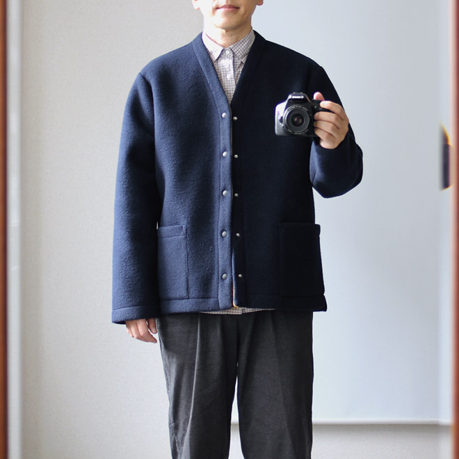 生地は打ち込みのしっかりした厚地ウールメルトンです。地厚、ウエイトともしっかりしたものとなっています。