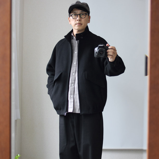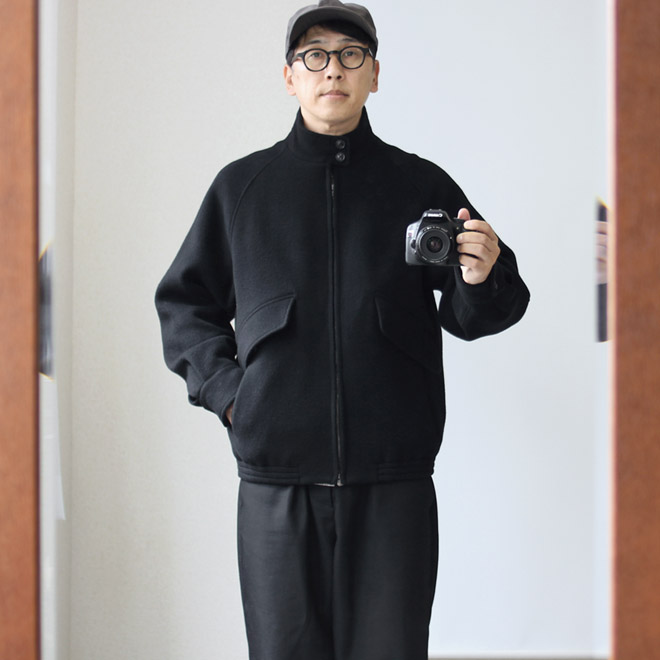 毎シーズン用意されている、クラシックなウールファブリックを使ったヘビーアウターの枠ですが、今季はコートアイテムではなく、ショート丈のブルゾン型でリリースとなり、けっこうな新鮮さを感じます。