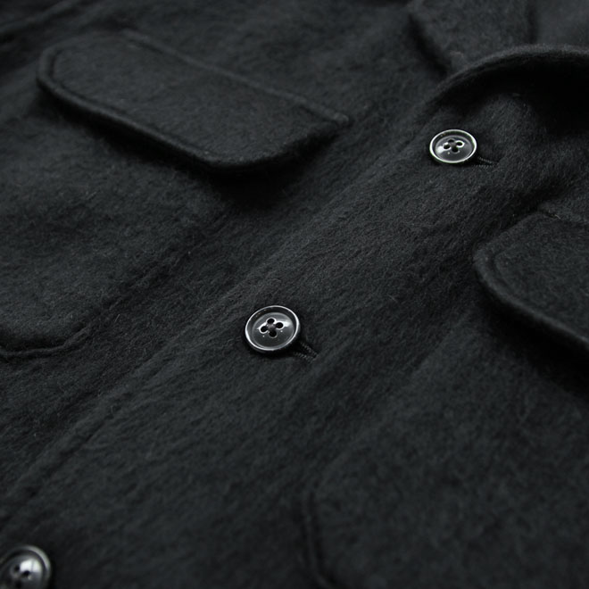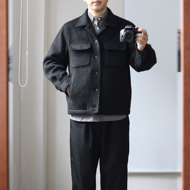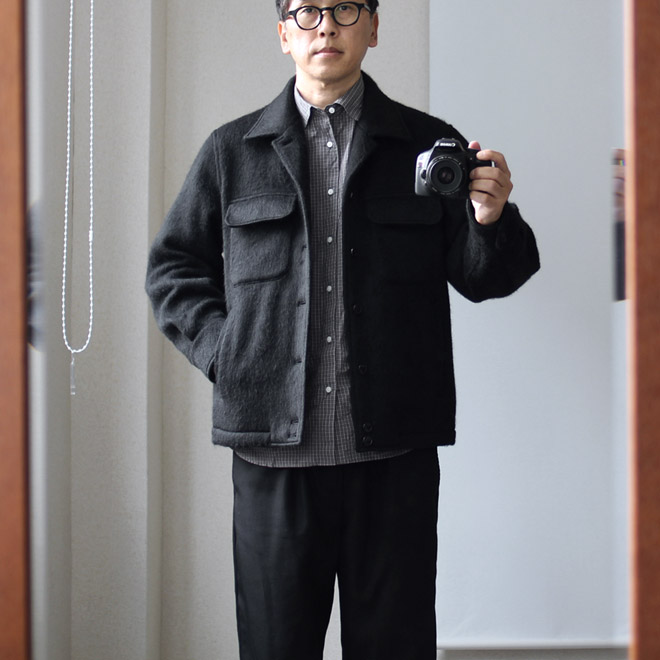 最後は定番モデルの 『Shirts Jacket』にアンゴラ起毛の厚手ファブリックを載せたショートジャケットです。