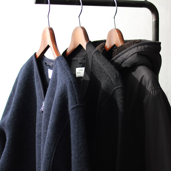 ウールフリースのジャケット2型、新登場モデルのリバーシブルジャケット1型、冬に活躍するジャケット類が届いております。